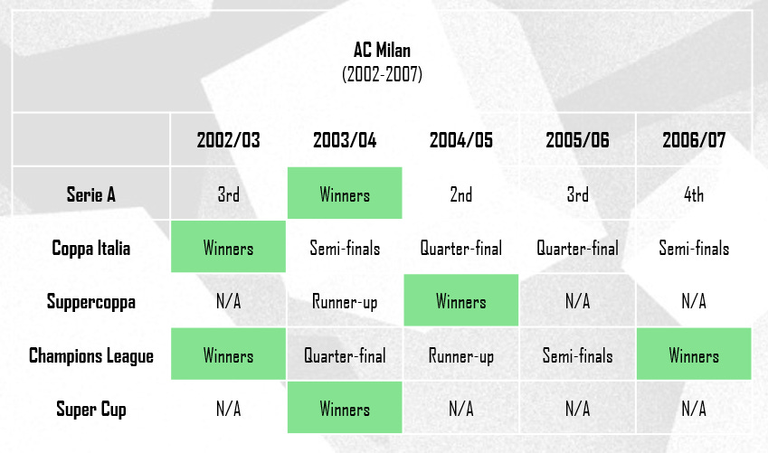 The great AC Milan team of the 2000s, twice winners of the Champions League during the period of 2002 to 2007, remain one of the most famed.